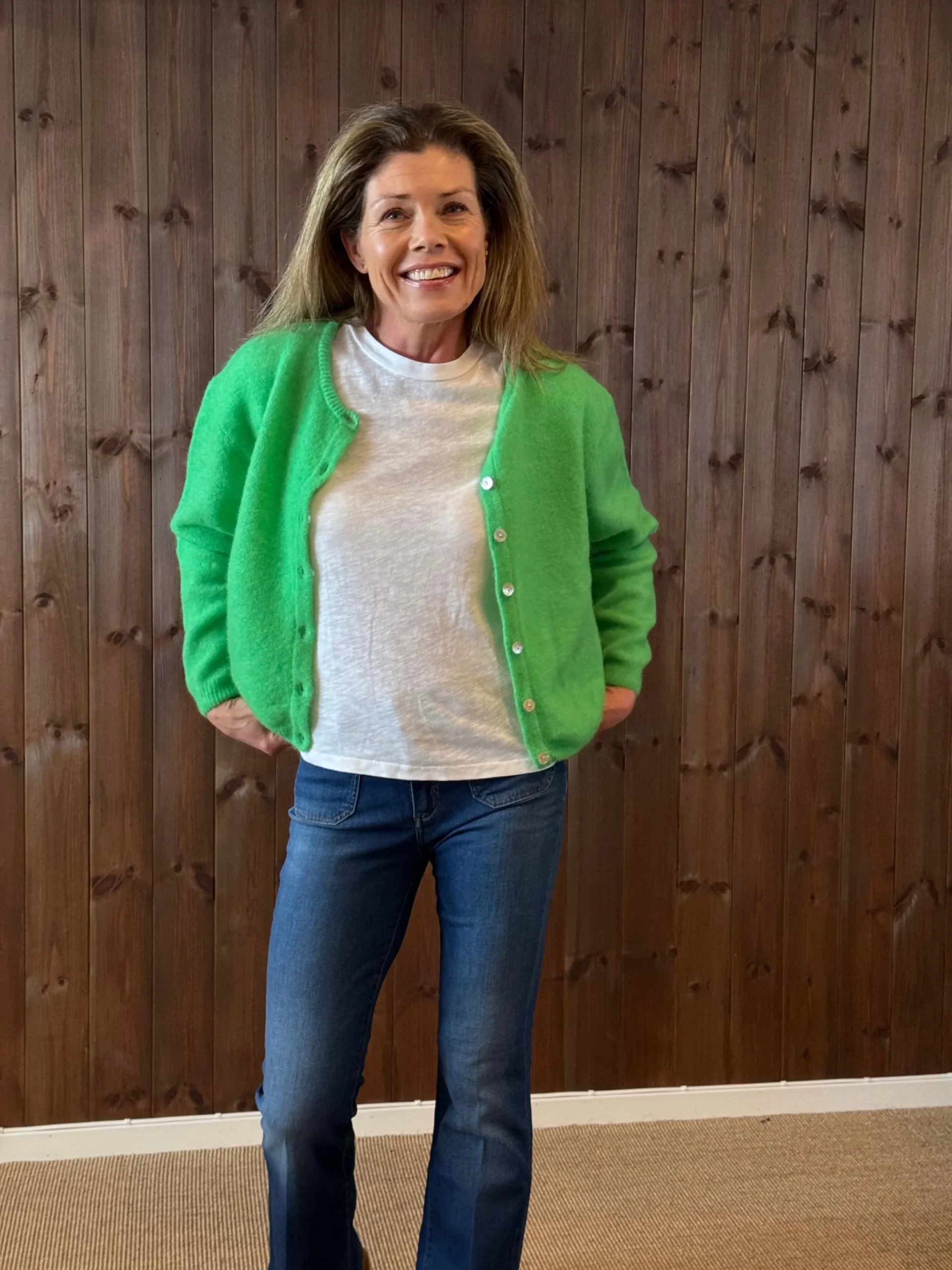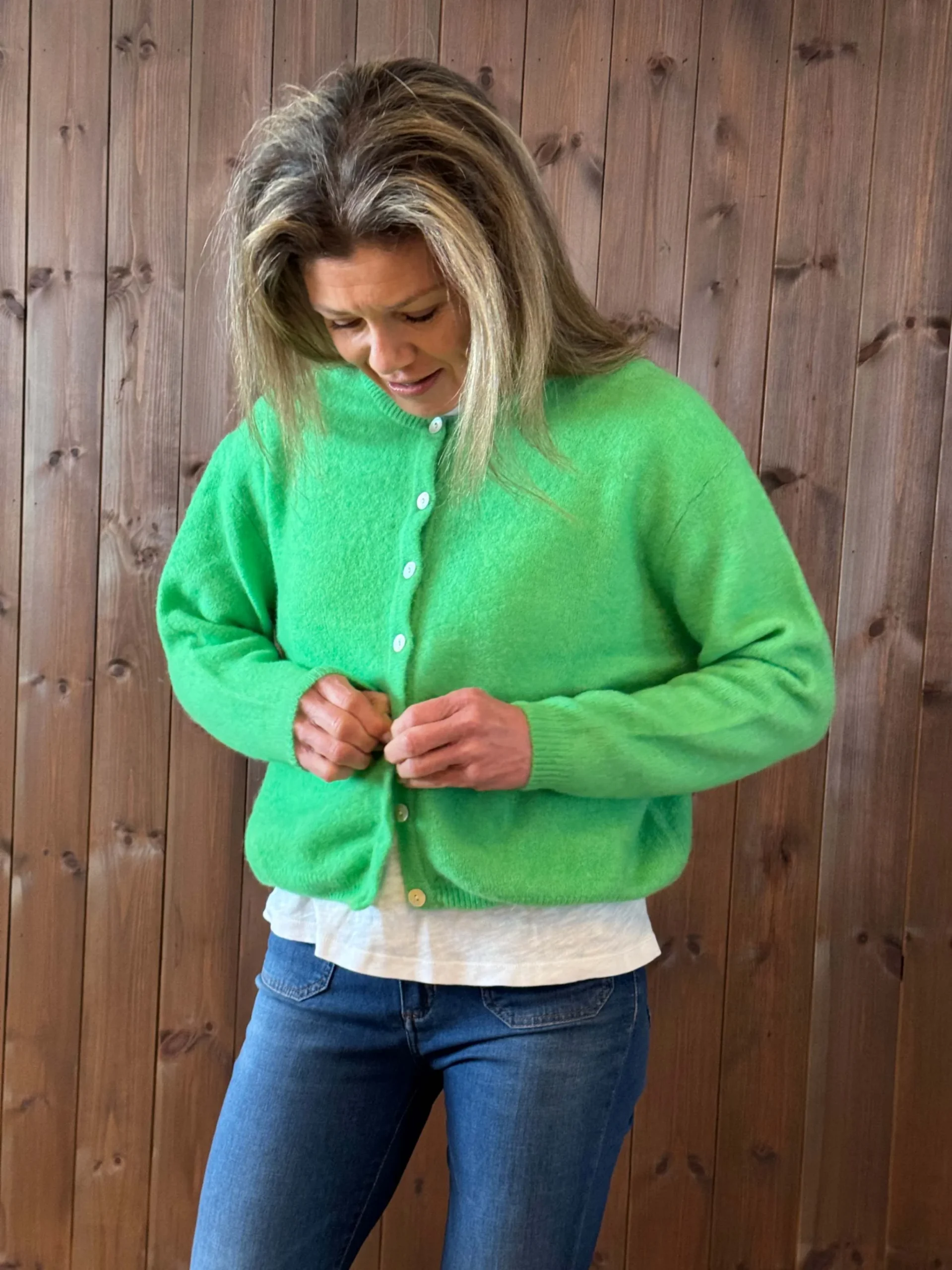Vitow cardigan i garden melange er en myk og behagelig strikkejakke i en lekker grønn farge. Den har lange ermer og et enkelt, klassisk design som passer godt til både hverdag og lag-på-lag antrekk