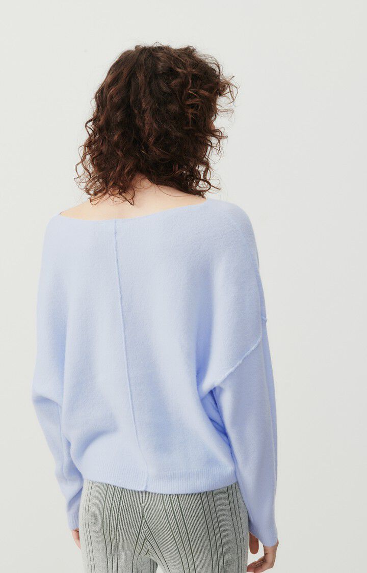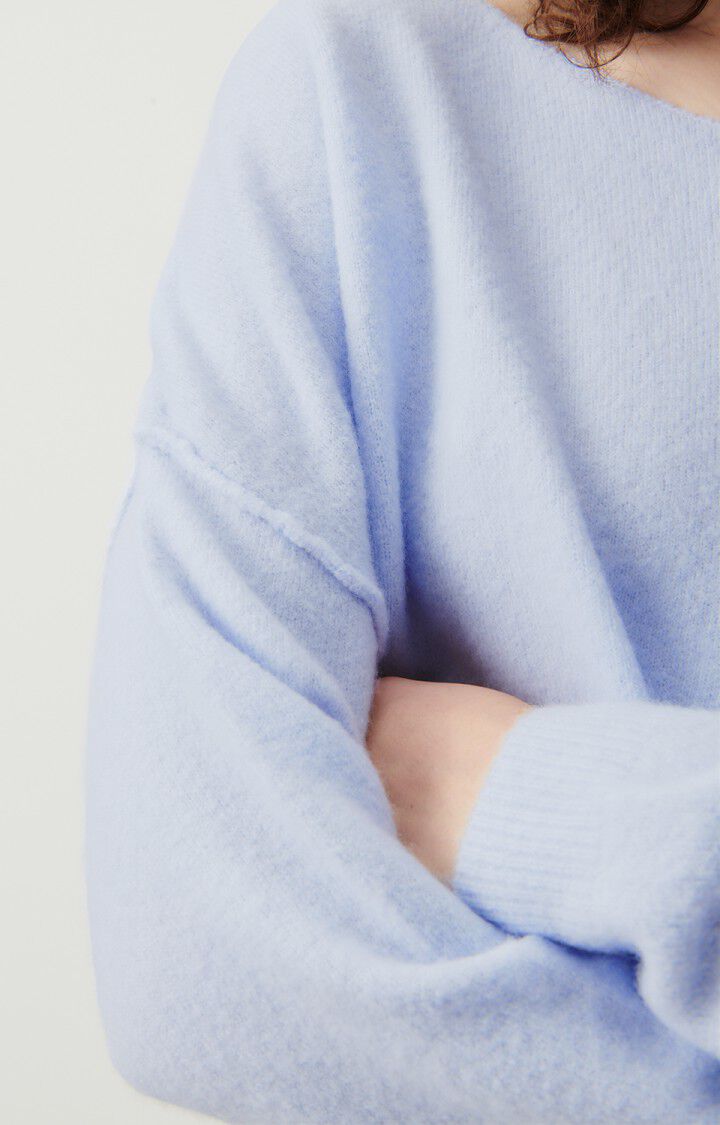 Myk og deilig genser fra American Vintage. Det er en oversized modell som er behagelig å ha på seg. Genseren har en båthals, lange ermer og lav skuldersøm.