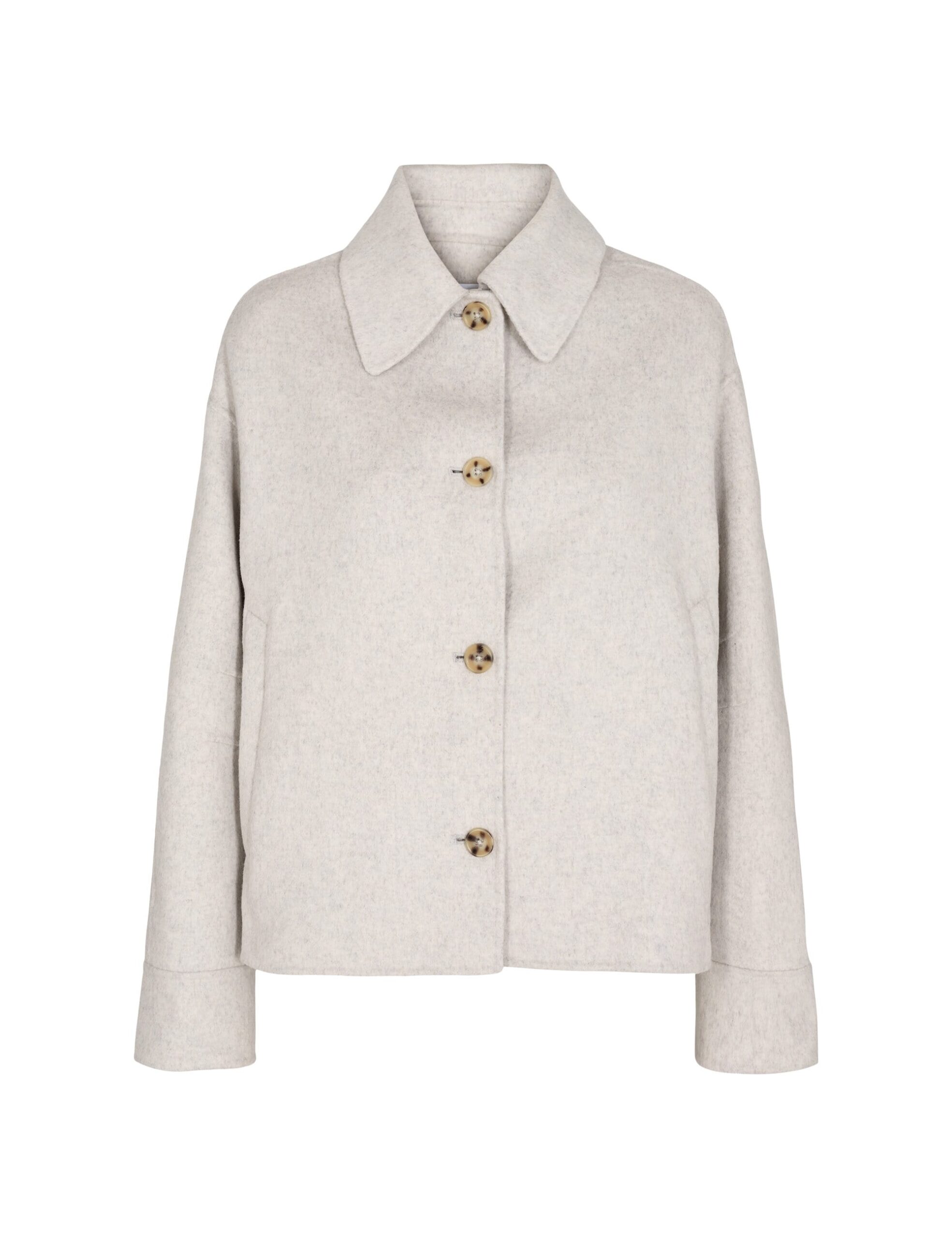 Skjortejakke fra Leveté Room i klassisk design og ullblanding. Den har lommer i sidene, knapper i front og skjortekrage. Passer til det meste!