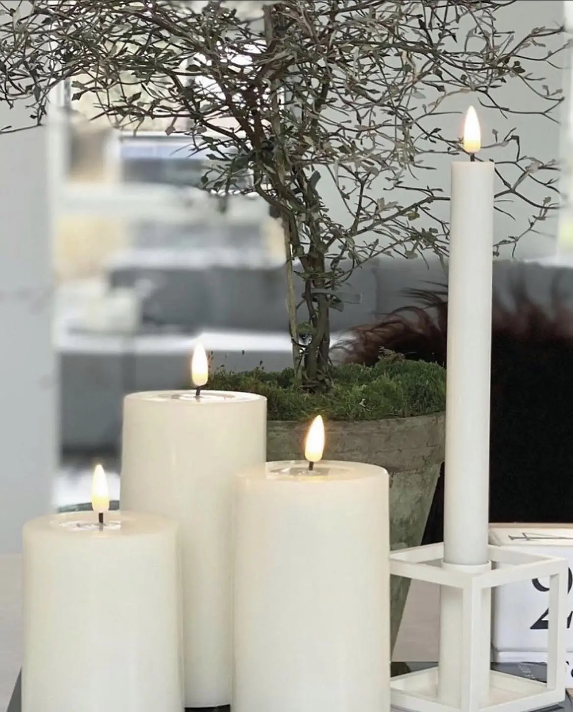 Led lys kronelys. Ser helt naturlig ut med vokset overflate og blafrende flamme. Kjøp med fjernkontroll, så du kan tenne, time og slukke lysene med en og samme kontroll. Trygt, sikkert og absolutt helt sotfritt!