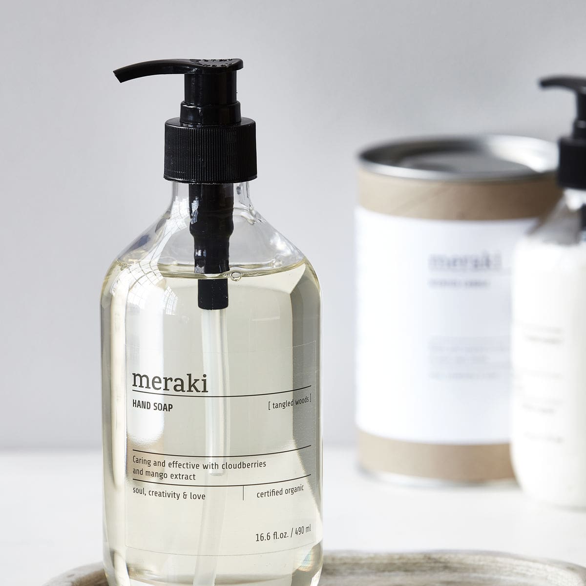 Få rene og velduftende hender med denne Tangled Woods-håndsåpen fra Meraki. Økologisk aloe vera og glyserin gir fuktighet og beskytter hendene mot å tørke ut. Sertifisert økologisk av ECOCERT Cosmos. Noter: Stjerneanis, peppermynte, patchouli og tre.