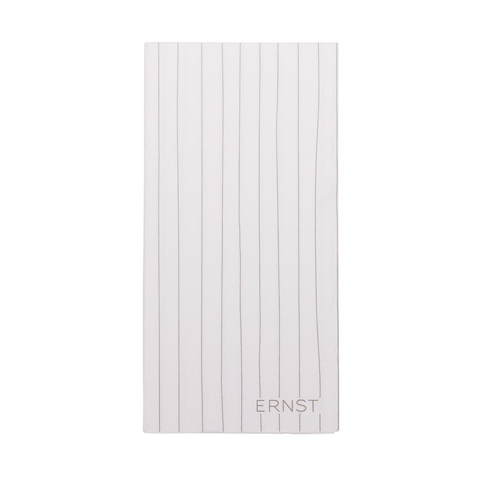 Fine servietter fra Ernst i hvit farge med grå striper. De måler 10×20 når de er brettet.